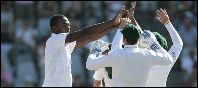 Overnight batsmen Angelo Mathews and Dinesh Chandimal played out the first five overs of the day without undue alarm before Rabada struck with the first ball of the sixth over when Chandimal (30) flicked him straight to Stephen Cook at square leg, the only fielder in a largely unmanned area of the field.