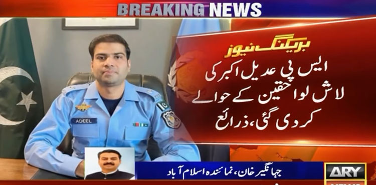 Earlier, the post-mortem of Superintendent of Police (SP) Adeel Akram was completed in the Pakistan Institute of Medical Sciences (PIMS). The medical report confirmed that the deceased SP Adeel Akram was hit by a single bullet, which struck him from the front.