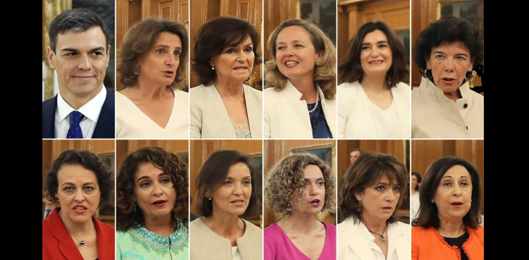 Socialist Prime Minister Pedro Sanchez named 11 women to top posts including defence and economy in a cabinet with six male ministers.