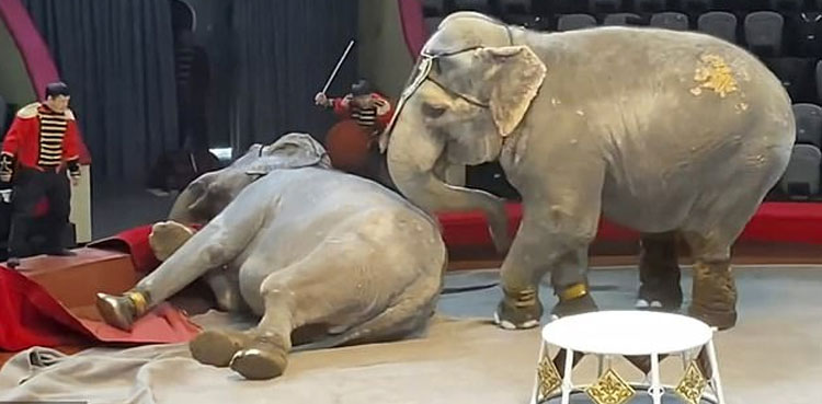 The two Indian female elephants – both longstanding circus performers – had previously got into a ‘conflict’ five years ago, said Sharifullin.