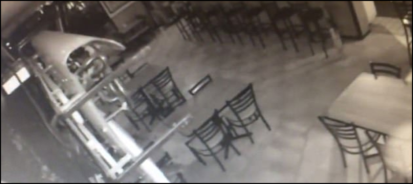 Spooky CCTV footage has emerged showing the furniture at a restaurant in California moving on its own in the dead of night.