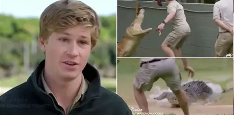 The younger Irwin was testing whether crocodile Casper was comfortable in his new surroundings and was trying to feed him, but the 18-year-old was forced to flee an enclosure after Casper lunged at him at Australia Zoo. The footage of the incident has gone viral on social media.