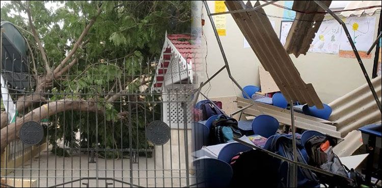 The dust storm also claimed a tree each at Karachi Press Club, Supreme Court Registry, Sindh High Court compound and the Arts Council, reports said.