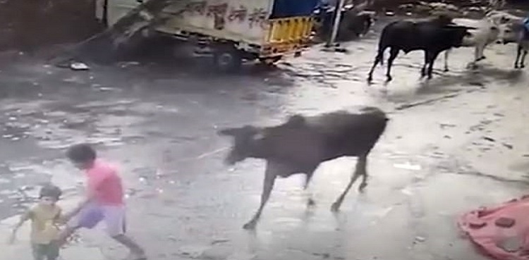 In an unfortunate incident, a stray bull went on the rampage in India, crushing a little boy as his elder brother tried to fend off the beast.