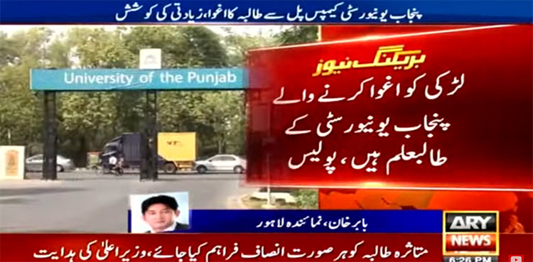 LAHORE: In yet another incident of sexual assault, two suspects allegedly attempted to rape a female student of Punjab University in Lahore besides also trying to film the episode, ARY NEWS reported.