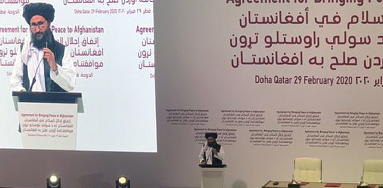 US special envoy Zalmay Khalilzad and Taliban deputy leader Mullah Abdul Ghani Baradar signed the agreement during a ceremony in Dohar, Qatar, ARY News reported on Saturday.