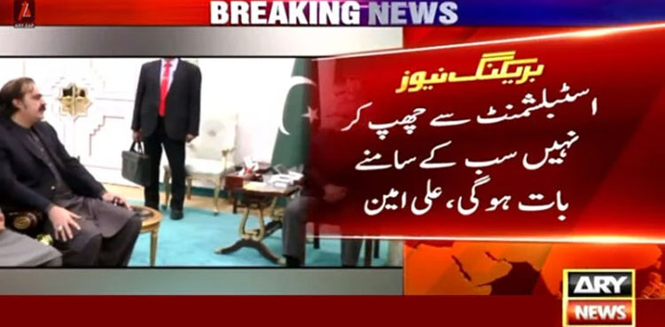 PESHAWAR: Khyber Pakhtunkhwa (KP) Chief Minister (CM) Ali Amin Gandapur has asserted that his party will hold dialogue with establishment openly, clarifying that PTI is not currently holding ‘backdoor talks’ with anyone.