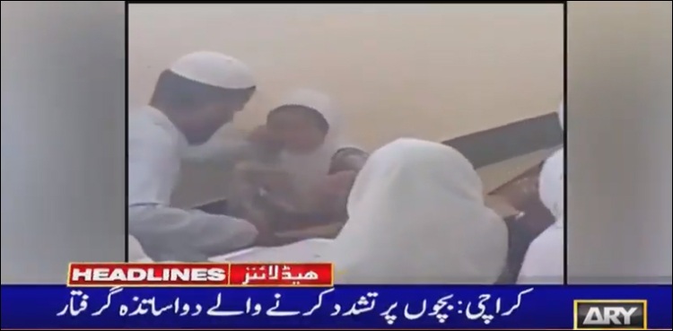 KARACHI: Police have arrested two seminary teachers in Karachi after a video showed one of them torturing a minor female student apparently with a stick, ARY NEWS reported on Sunday.