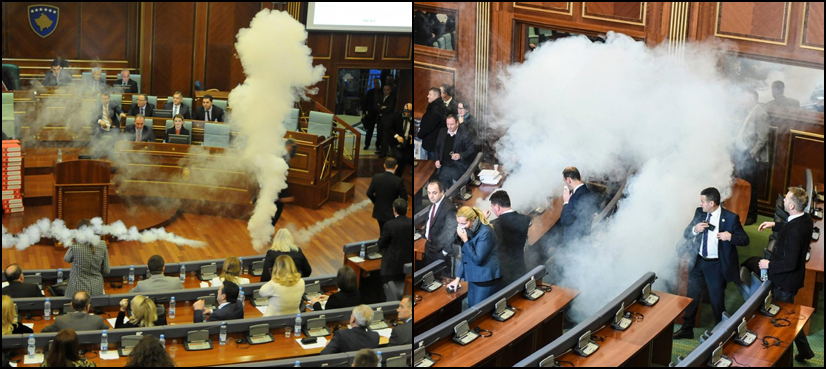 Vetevendosje MPs have used tear gas to disrupt parliament several times in the past, notably to try to stop Thaci’s election in 2015, agreements with Serbia in 2016 and earlier efforts to pass the Montenegro deal.