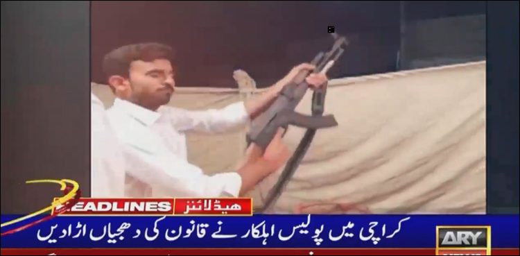 According to the police, a marriage ceremony was underway in Sherpao Colony of Landhi. A policeman identified as Aziz resorted to aerial firing in jubilation.