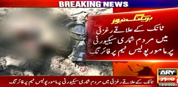 ٹانک کے علاقے رغزئی میں مردم شماری سیکیورٹی پر مامور پولیس ٹیم پر فائرنگ#ARYNews pic.twitter.com/SGsLh1xijJ