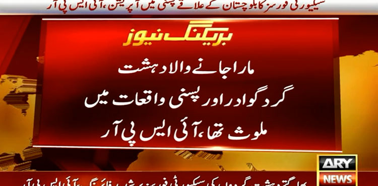 The ISPR said the killed commander was involved in firing and IED attacks on security forces in Gwadar and Pasni areas. In addition, a large cache of arms and ammunition was also recovered.