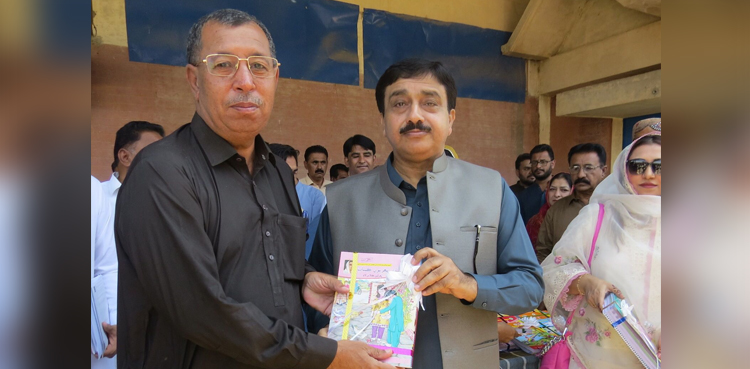 Nusrat Parvez Sehto, and several educational administrators. During this event, textbooks were officially handed over to taluka-level education officers in Jamshoro.