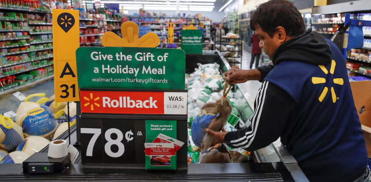 President Donald Trump, whose approval ratings on the economy have been sliding, mentioned Walmart’s reduced prices several times this week, noting a 25% decline in holiday costs from last year.