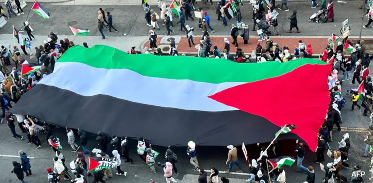 WASHINGTON: Tens and thousands of demonstrators rallied and marched in Washington, D.C., on Saturday to demand an end to Israel’s deadly military campaign in Gaza, marking almost 100 days since the start of the Israel-Palestinians war that is killing 250 Palestinians per day.