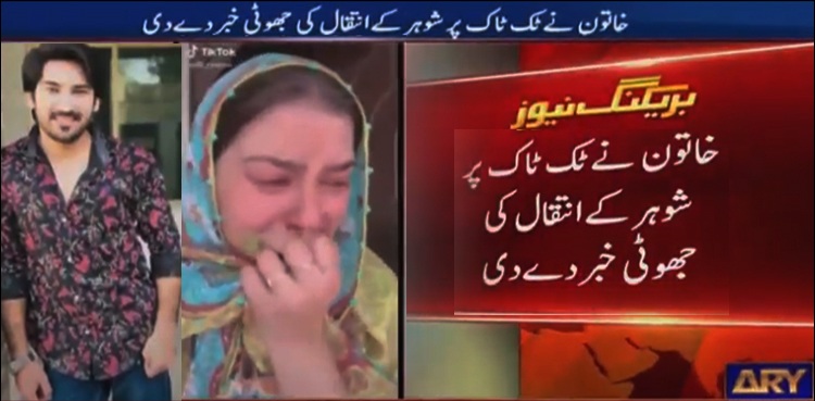 In what can be termed a condemnable act to gain followers on popular short-video app TikTok, a local TikTok star Adil Rajput’s wife announced false news of his death on their joint account, ARY News reported on Tuesday.