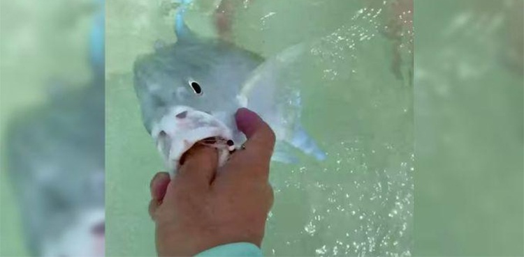 TikTok video shows man fighting off sharks while trying to catch fish