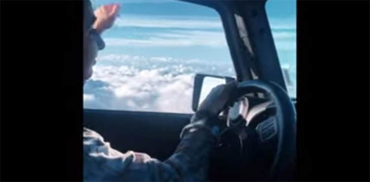 The video was shot at the top of Mount Haleakala, Maui, Hawaii. Though, both the car and background is real, she is actually driving on the road and is at a certain height which makes it seem like she was in a ‘flying jeep.’