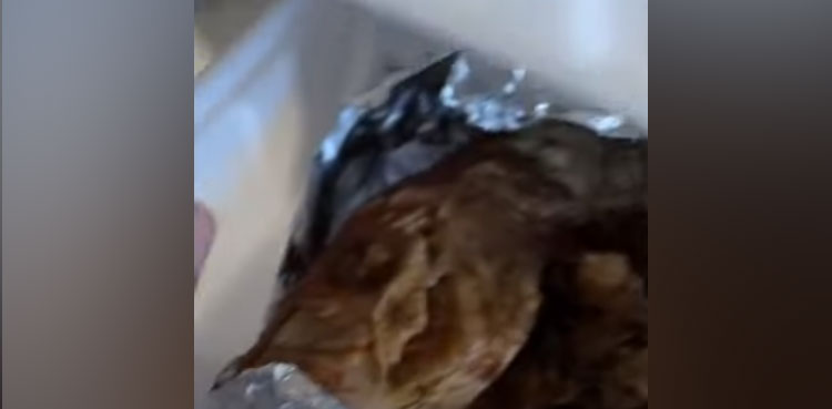 The video by the TikTok user sees the fish meal on an aluminium foil in a box.