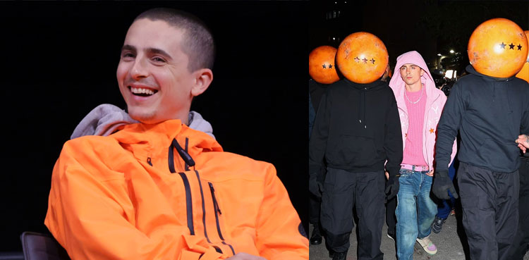 On Thursday, November 20, the 29-year-old actor arrived flanked by a team of men dressed in all black. Each men wore bulbous orange masks designed to resemble giant ping-pong balls, creating an eye-catching spectacle for fans and photographers alike.