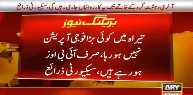According to security sources, no large-scale military operation is currently underway in Tirah. Only intelligence-based operations (IBOs) are being carried out against terrorists, strictly on the basis of actionable intelligence. The sources said prevailing weather conditions are also not suitable for a major operation, further dispelling reports suggesting otherwise.