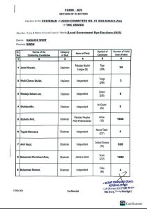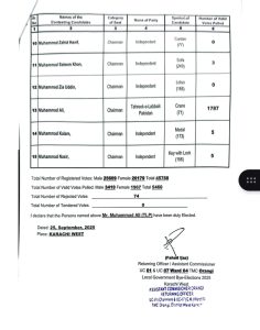 The recount, conducted by the Returning Officer, completely overturned the original result. In the initial result on Wednesday, Shahnila Amir was declared the winner of the UC-1 chairperson seat in Orangi Town, securing 3,801 votes against Muhammad Ali’s 1,787 votes.