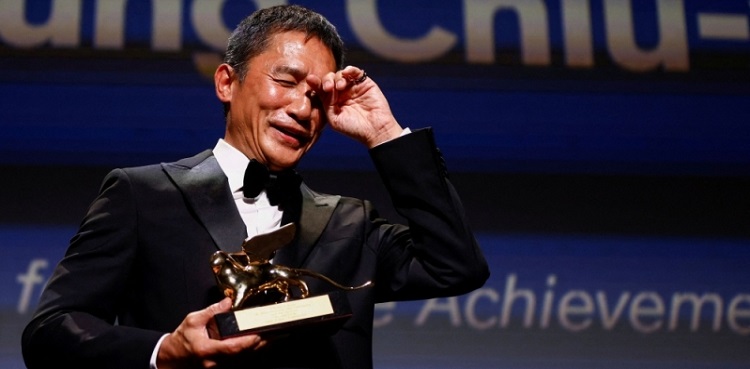 Hong Kong actor Tony Leung Chiu-wai received a Golden Lion Lifetime Achievement Award at the Venice Film Festival on Saturday, brushing away his tears as he was given a prolonged standing ovation.