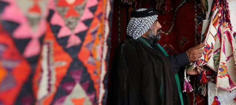 Nothing in the world can convince Sheikh Hazem al-Hiyali – a Bedouin scarf on his head, hooded cloak over his shoulders and shawl on his neck – to replace the traditional carpets he receives his guests on for imported versions.