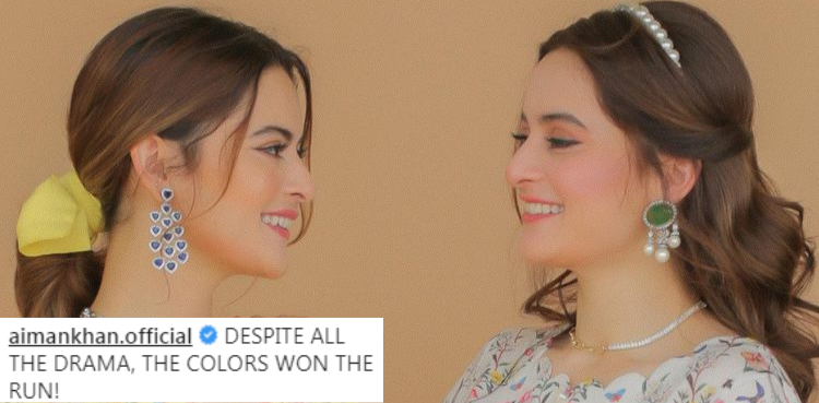 Sharing a fashion film from the Aiman Minal Closet’s Eid Edit on her Instagram, Aiman Khan wrote, “DESPITE ALL THE DRAMA, THE COLOURS WON THE RUN!”