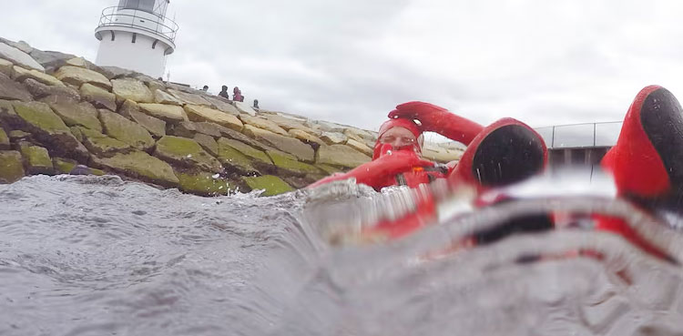 At the FPSS safety training, more than 50 fishing captains and crew learned to put out fires, make mayday calls, plug leaks, and deploy safety suits.