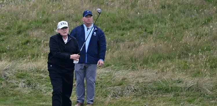 The US president, wearing his signature white polo shirt under the coar, a white cap with “USA” written on it, and black pants, looked completely at ease while playing gold.