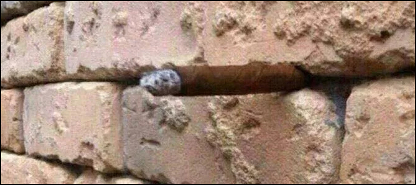 At first glance it appears we are looking at a normal wall with a simple small rock embedded between two of the red bricks.
