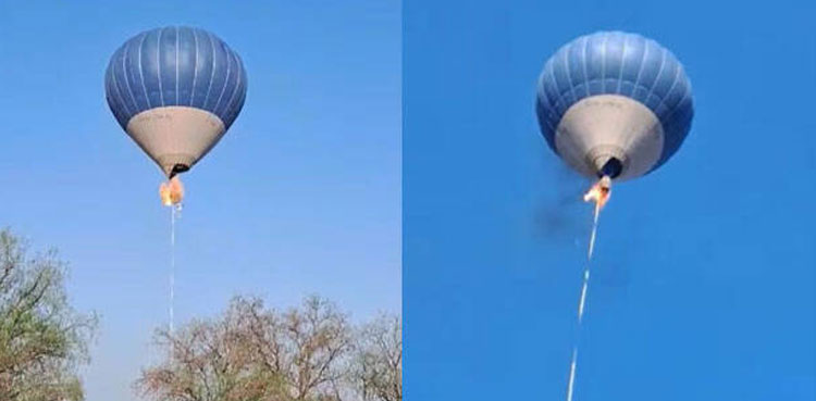 A video posted on social media shows the balloon’s gondola on fire, in a perfectly clear sky.