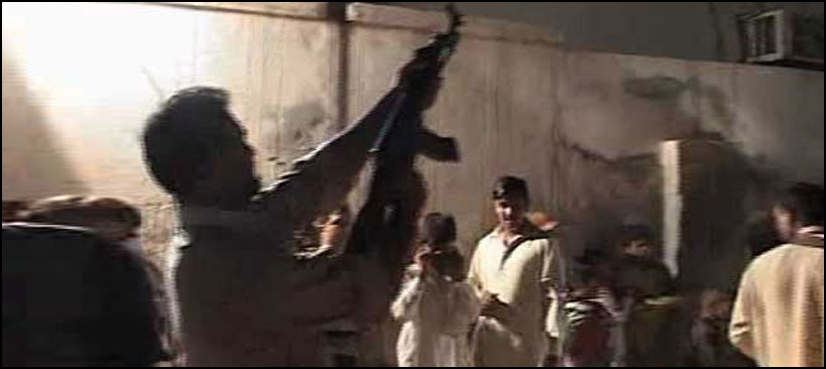 A man, Nadeem Abbas, lost his life in the incident of aerial firing in Peela School area of North Karachi, while a policeman died from firing near Hassan Square flyover.