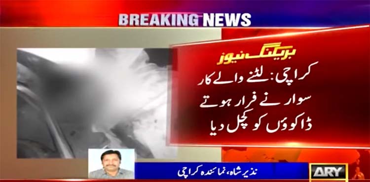 KARACHI: A man on Saturday killed two muggers after over-running them with his vehicle at Super Highway in Karachi as one of their accomplice succeeded in escaping from the scene.