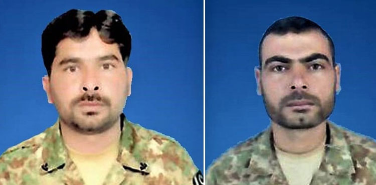 The martyred soldiers were identified as Sepoy Faridullah (31) resident of Karak, and Sepoy Shuaib Hassan (29) resident of Dera Ismail Khan, the ISPR said in a press release.