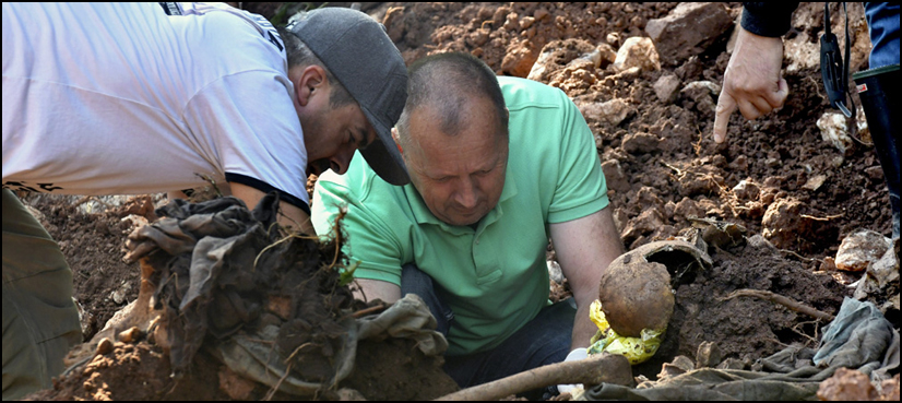 One of the graves was discovered in the mountainous area of Koricanske Stijene in central Bosnia, where more than 200 civilian men were executed by Serb forces in August 1992 following their eviction from a northwestern region.