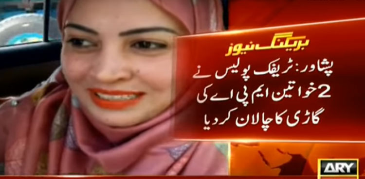 PESHAWAR: Two women legislators of Khyber Pakhtunkhwa Assembly were fined for traffic violation in Peshawar on Saturday.