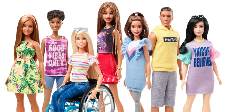 The Barbie Fashionistas line now includes dolls with hearing aids, wheelchairs, prosthetic limbs, vitiligo, and even Down’s syndrome.