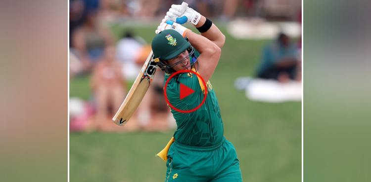 The International Cricket Council shared the video of Steve Stolk’s destructive batting in the group stage fixture at Potchefstroom’s Senwes Park on their account.