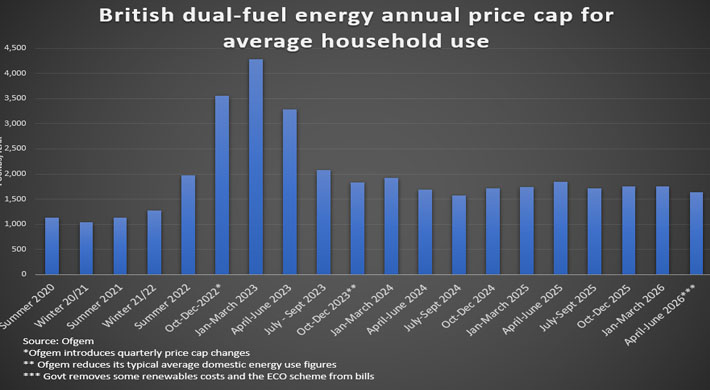 Even at the new level the price cap remains around 30% higher than in the winter of 2021/22, before Russia’s invasion of Ukraine led to a spike in global energy prices.
