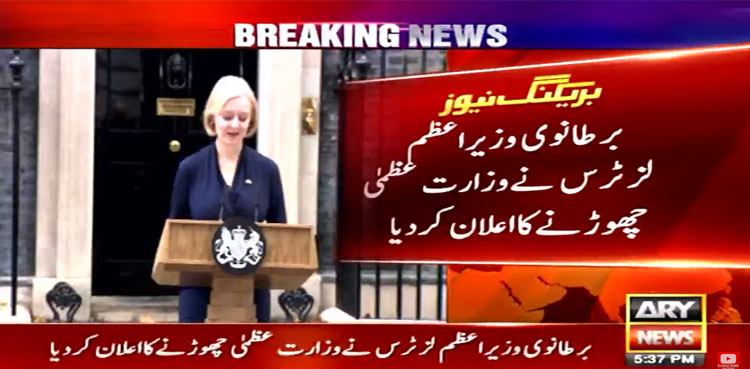 LONDON: United Kingdom (UK) Prime Minister Liz Truss announced her resignation Thursday after six turbulent weeks in office, making her one of the shortest-serving prime minister in British history, ARY News reported.