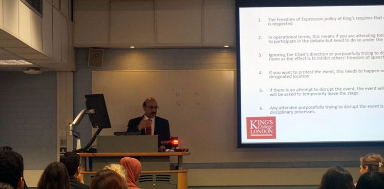 He was addressing a seminar titled “Kashmir and Human Rights” at King’s College London.