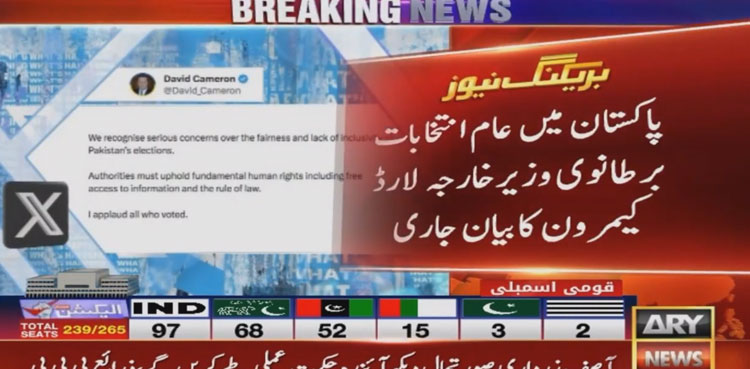 LONDON: The United Kingdom (UK) on Friday acknowledged serious concerns about the “fairness and lack of inclusivity” of Pakistan’s general elections 2024, ARY News reported.