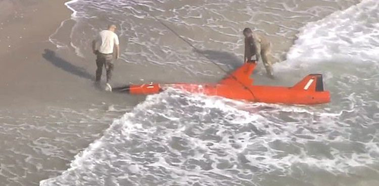 The massive orange drone, which are used as aerial targets for fighter pilots, was discovered by beachgoers at Ocean Hammond Park near Boynton Beach, authorities said.