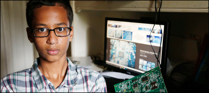 Ahmed Mohamed, who was 14 at the time, became an internet sensation after being handcuffed and detained for hours for bringing his “invention” — a circuit board wired to a digital display — to school in the Texas city of Irving, near Dallas.