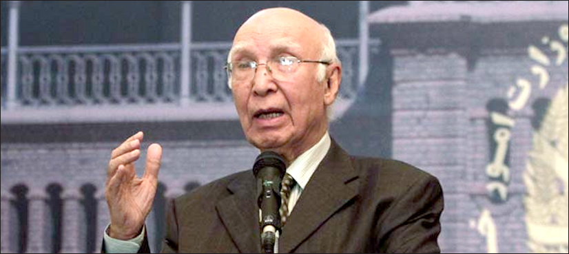 Sartaj Aziz said the gate was being constructed in 35km inside Pakistan’s territory from the border, hence, no one has the right of objection to this.