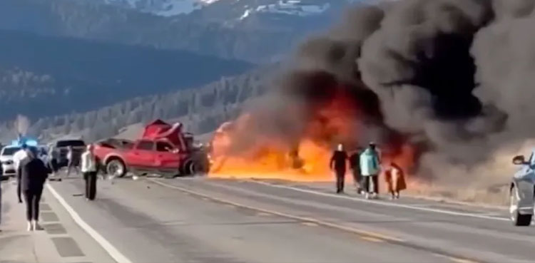 Detectives probing the crash said a pickup truck collided with a van carrying 14 people on Thursday evening by Henry’s Lake in eastern Idaho.