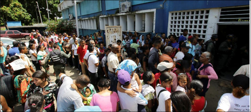 “We’re going to die because there is no treatment,” said homemaker Yaritza Figuera, 29. Suffering from malaria, her nine year-old son sat on the floor in a health center because the waiting room was full.