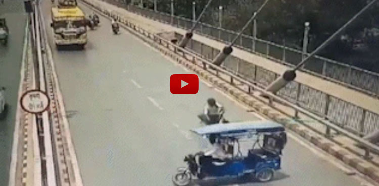 A motorcyclist was killed after his two-wheeler crashed into an e-rickshaw that suddenly took a U-turn in the middle of a busy one-way road in India’s Uttar Pradesh.